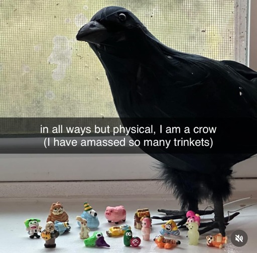 minus-squareowenfromcanada@lemmy.worldlinkfedilinkEnglisharrow-up16·11 months ago✅ Small ✅ Dark ✅ Collect trinkets ✅ Form lifelong bonds ✅ Scream at strangers TIL I am a crow