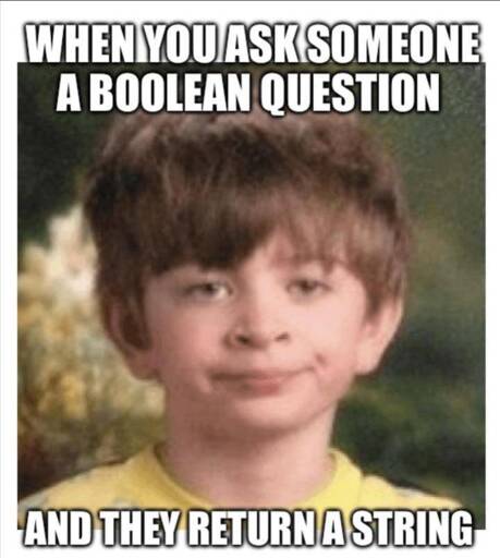 My relationship is the opposite. My wife asks me a boolean question but expects a string response.