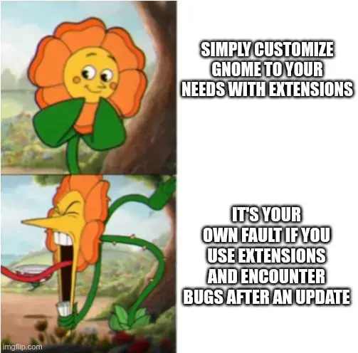 minus-squareJohnny101@lemmy.worldlinkfedilinkEnglisharrow-up10·2 days agoWhich is why Plasma is better