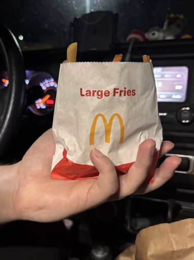 Just a paper bag now. At this point they’re gonna bring back the supersize but it’ll just be a large lol