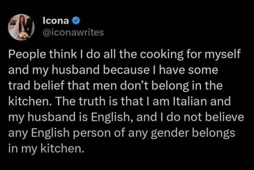 Well, English recipes are not really the best, it’s more fair to say that an US citizen of any gender don’t should be in the kitchen, after seeing them adding ketchup to Spaguetti Carbonara