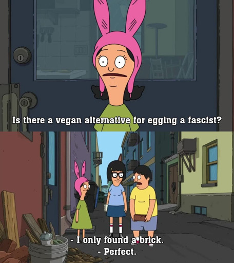 Brick also comes with the benefit of a much higher chance of permanently removing the fascist and their harm.